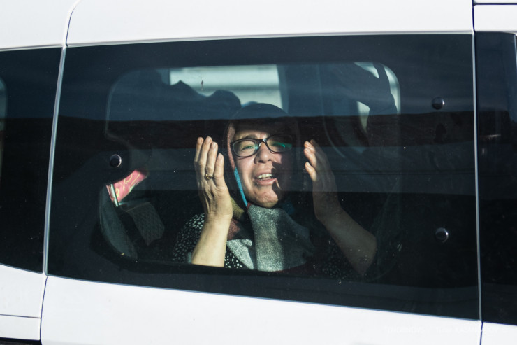 Этот кадр фотограф снял по дороге в аэропорт. Местные жители эмоционально прощались с нашими спасателями.