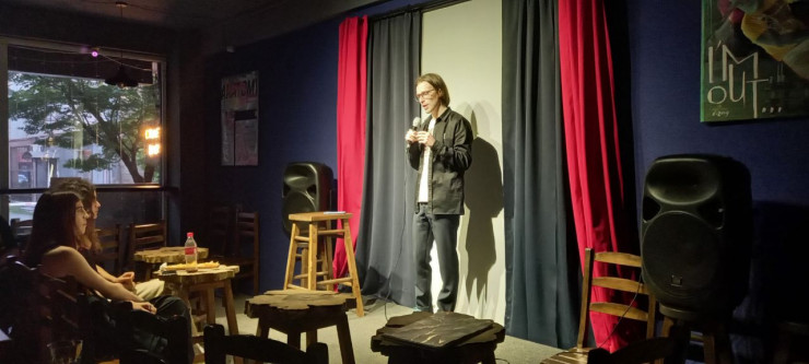 Дима из Санкт-Петербурга. Он выступает в жанре комедия три года и, конечно, для него Казахстан в первую очередь ассоциируется с юмором.