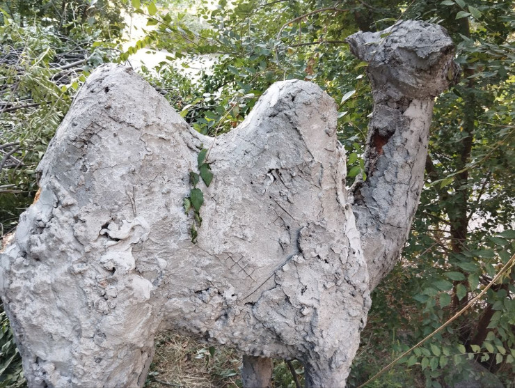Вот этот верблюд в процессе работы. Чтобы сотворить красоту, Владимир использует проволоку, монтажную пену, цемент. Потом все это будет шкуриться, полироваться и краситься. Когда скульптура будет готова, она займет свое место в одной из зон придомового парка.