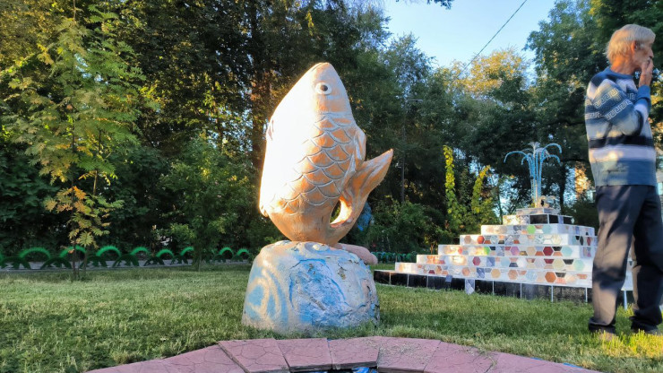 Ухаживает за мини-парком Владимир в одиночку. Чтобы растения не засохли, установил везде автополив. В скором времени все трубы придется менять, так как за время эксплуатации они потихоньку изнашиваются.