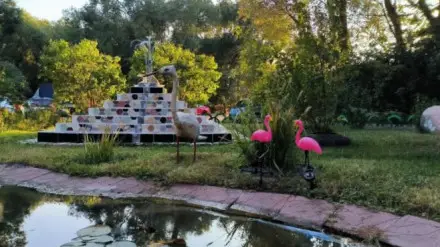 Местные дети труды Владимира Старикова берегут. Некоторые соседи даже немного помогают украсить пространство. Одни, например, купили этих маленьких розовых фламинго, чтобы дополнить "зону Африки".