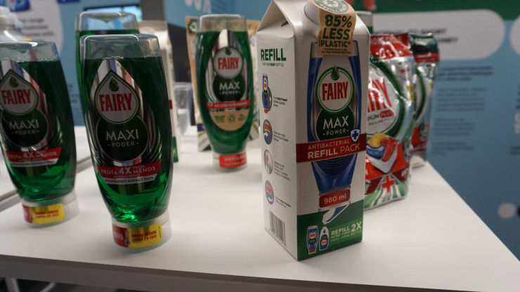 Одна из них - сменный блок в виде пакета Tetra Pak с гребешком, напоминающего упаковку кефира на казахстанских полках. Основным плюсом здесь является то, что для его производства используется на 85 процентов меньше пластика и cодержимое упаковки позволяет заполнить до двух стандартных бутылок Fairy.