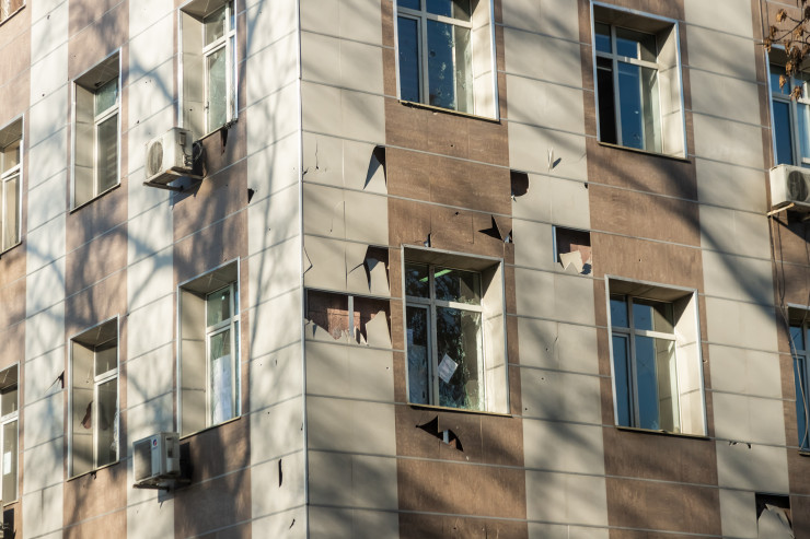 А это здание городского акимата. Погромщики захватили его 5 января, а затем подожгли. Все, что было внутри, полностью сгорело.