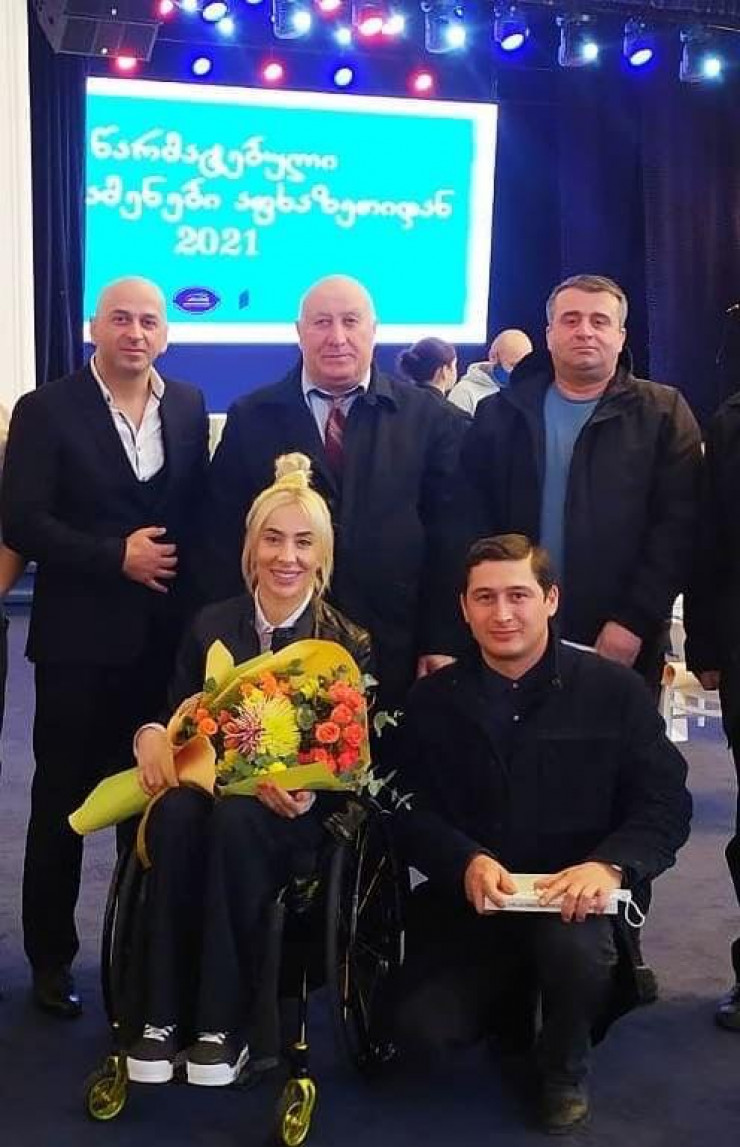 Фото: церемония награждения в сфере спорта. Джейран внизу, рядом с призером чемпионатов Европы и мира – парафехтовальщицей Ирмой Хецуриани
