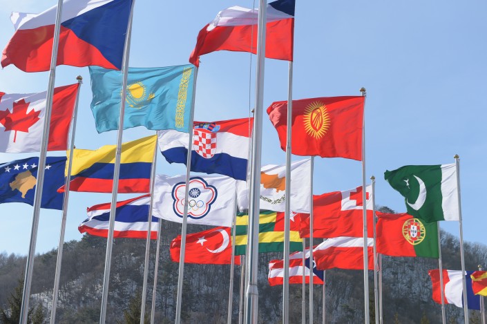 В целом в олимпийских деревнях смотреть не на что. Кроме той, которая в Пхенчхане. В дни перед открытием тут постоянная атмосфера праздника. Здесь то и дело проходят церемонии поднятия флагов стран-участниц, которые сопровождаются шумными представлениями.