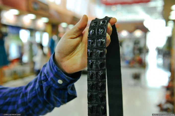 Купить их можно по цене от пяти тысяч тенге и выше. Вот, например, такой ремень из кожи крокодила стоит 35 000.