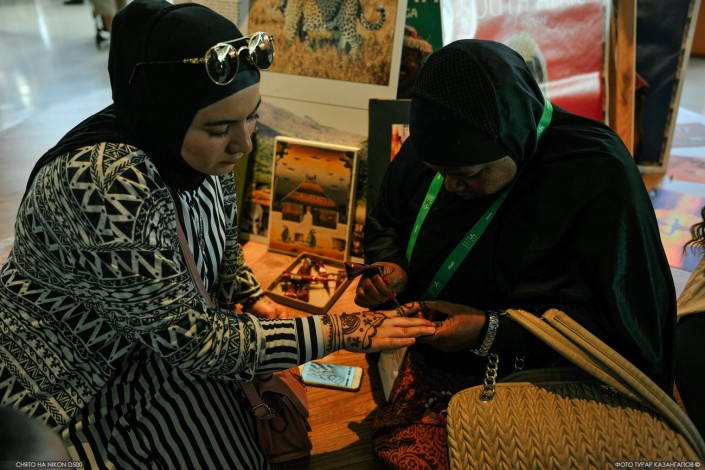 "Они очень добродушный народ и очень сильно уважают матерей. А еще они очень разносторонние. Могут не только хорошо торговать, но и хной рисовать, танцевать и петь - это очень клево", - говорит одна из казахстанских девушек, работающих в африканском павильоне.