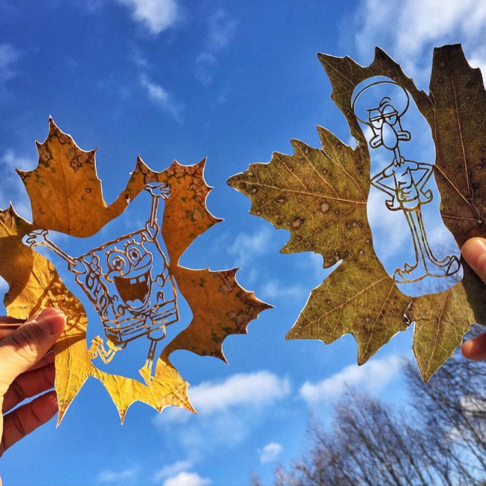 "В 2018 году мне в Instagram написала представитель Nickelodeon с предложением о сотрудничестве, попросив контакты для связи. Если честно, я вначале не поверил, думал, это фейковый аккаунт. Через день решился все-таки ответить и оставил свои данные. Через неделю мне позвонили с телеканала и рассказали о желании поработать. Мне предложили вырезать героев из листьев и сфотографировать в осенней тематике. Это были около 10 персонажей из мультсериалов:  Спанч Боб, Сквидвард...