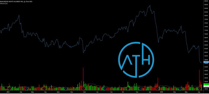 График акции Walgreen Boots Alliance c 2018 года. Данные tradingview.com