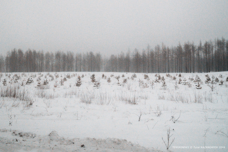 Местами уже заметны большие участки с высаженными на них хвойными деревцами.
