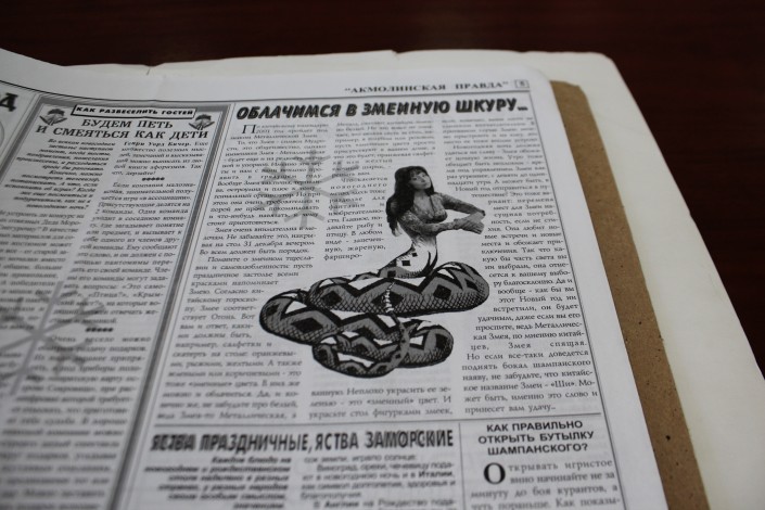 В "Акмолинской правде" за 30 декабря 2000 года статья о предстоящем годе Змеи. Иллюстрирован материал коллажем - девушка-змея, напоминающая певицу Марину Хлебникову.