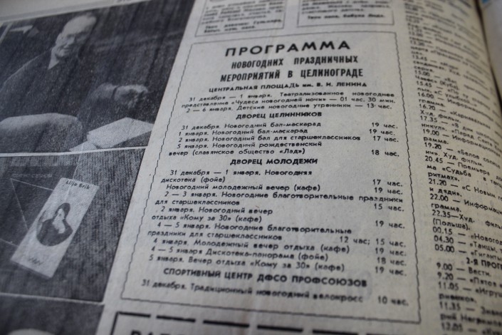 В одном из декабрьских выпусков газеты "Целиноградская правда" опубликован план мероприятий к Новому году. Помимо традиционных утренников для детей, в Целинограде проводили вечерний бал и молодежные дискотеки для взрослых.