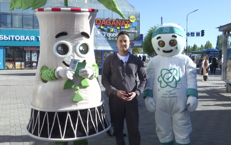Они раздавали горожанам брошюры и буклеты, приглашая 6 октября на референдум. Карагандинцы фотографировались с необычными персонажами.
