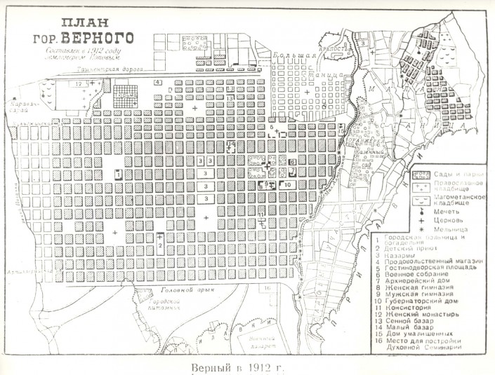 Город не застраивался хаотично. Созданный комитет четко прописал правила обустройства Верного. Сначала город разделили на кварталы трех категорий - дорогие участки находились выше к горам, более дешевые ниже. После разметки участки разыгрывались по методу лотереи: сначала вытягивался номер участка, и только потом его можно было выкупить с аукциона. Вырученные с аукциона деньги направлялись в городскую казну.