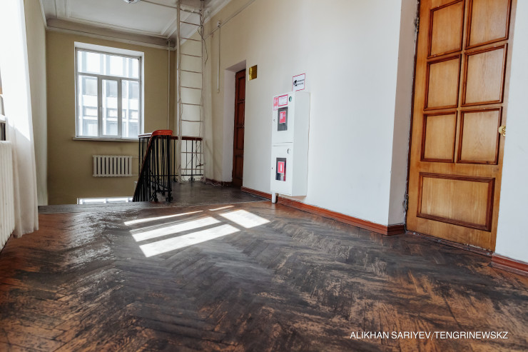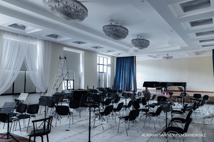 "Это здание начали возводить в 1952 году, в 1955-м сдали в эксплуатацию. Национальный оркестр народных инструментов переехал сюда в 2018-м. Капитального ремонта, к сожалению, здание не видело никогда. В 2011-м был произведен косметический ремонт – полностью все покрасили. Текущий ремонт проводим ежегодно, недавно поменяли отопление", – говорит Медет Ермеккалиулы.