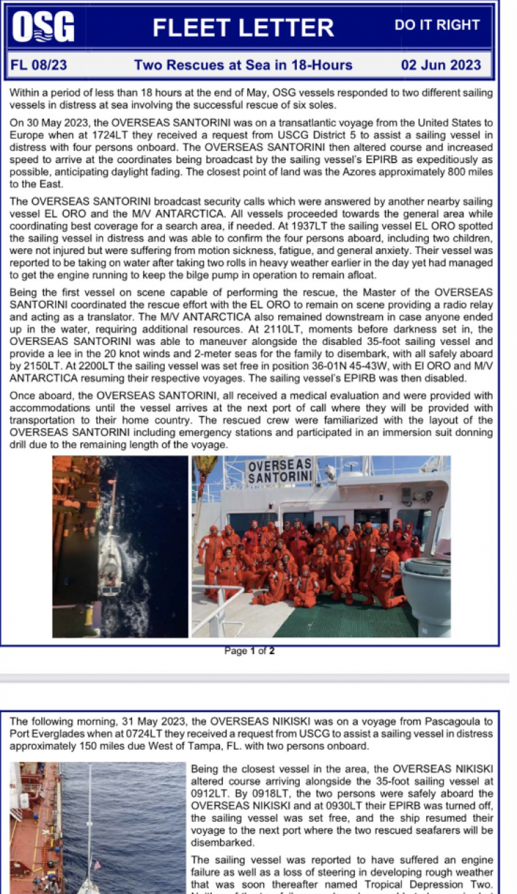 "Мы не единственное судно, которое могло бы помочь. Но многие не откликнулись на сигнал. Однако для нашего экипажа это естественно: помогать другим - должно быть нормой. Не обязательно это делать в океане, творить добро можно и в доме по соседству", - призвал он.