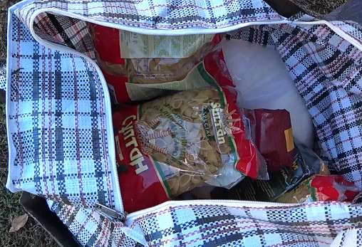 "Раньше еще консервы давали, сейчас не дают, - заметила одна из жительниц, получивших сумку. - Они вот так два раза в год приезжают".