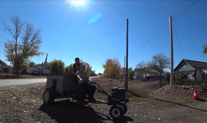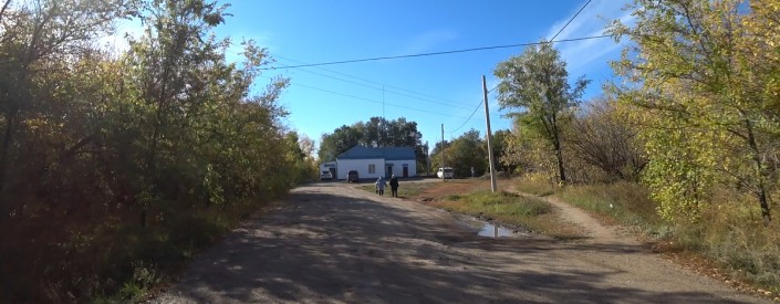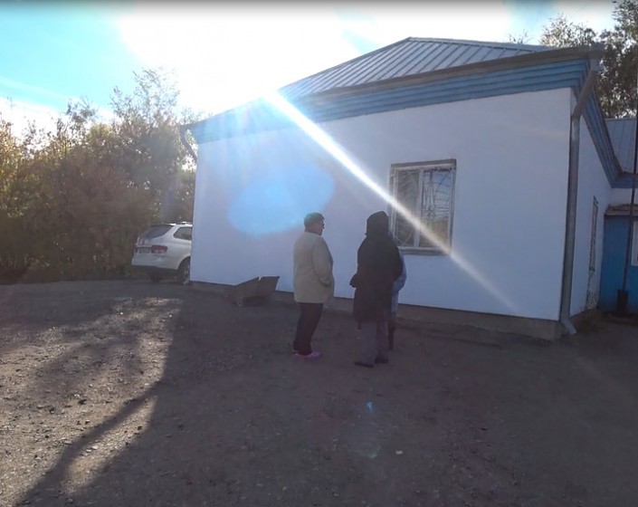 Возле акимата, который местные люди по старинке называют сельсоветом, собрались три пенсионерки. Это немки. Они ждут "гуманитарку", то есть гуманитарную помощь (социальная помощь этническим немцам от правительства Германии), которую периодически привозит им общество немцев "Возрождение". Машина с продуктами первой необходимости должна прибыть с минуты на минуту, а пока у нас есть возможность пообщаться с жителями.