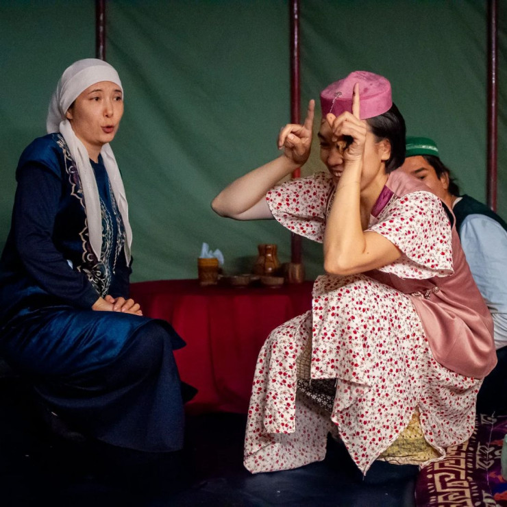 "На репетициях оттачивали произношение, чтобы у зрителя было понимание, что он находится в ауле. Нужно было сделать так, чтобы люди вырвались из действительности и оказались с этими сказками в той самой юрте. Порой на этот спектакль приходят дети, которые знают казахский, и актеры начинают говорить без перевода на русский. Бывает, наш сын иногда вклинивается во время спектакля, кричит: "Мен, мен!" или "Рақмет, Толағай" (улыбается)".
