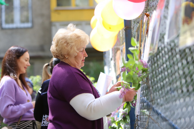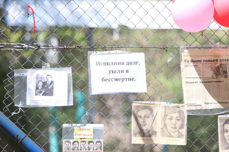Многие приносят с собой портреты самых близких - героев, которые сражались за мир.