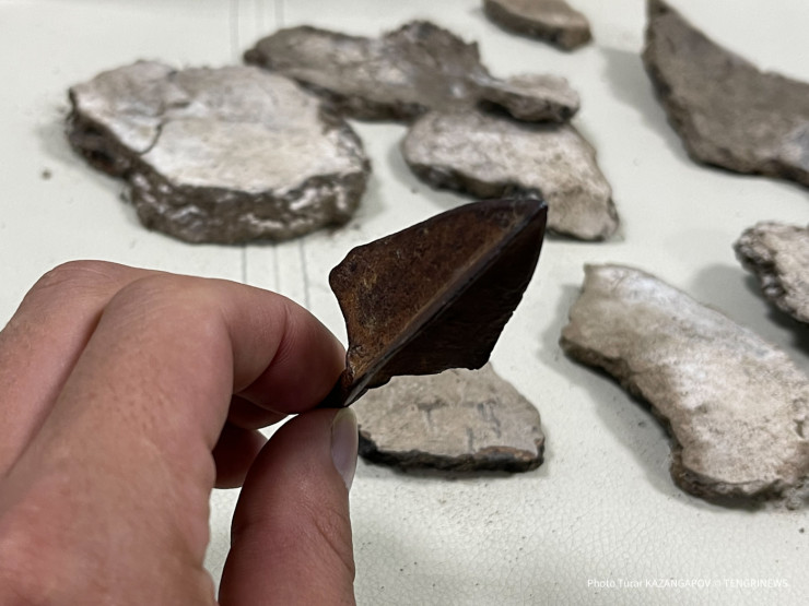 "Есть каменные отщепы орудий труда, изготовленные примерно 40 тысяч лет до нашей эры, глиняная посуда с узорами эпохи бронзы, вот топорище, к нему привязывалась специальная палка, и этим приспособлением долбили землю. Всего здесь 247 подтвержденных курганов, и если проводить дальнейшее изучение, можно найти пласты истории, свидетельствующие, как народ проживал на этой территории и в 16 веке, и в 8 веке нашей эры, и в 8 веке до нашей эры, и 5 тысяч лет назад.