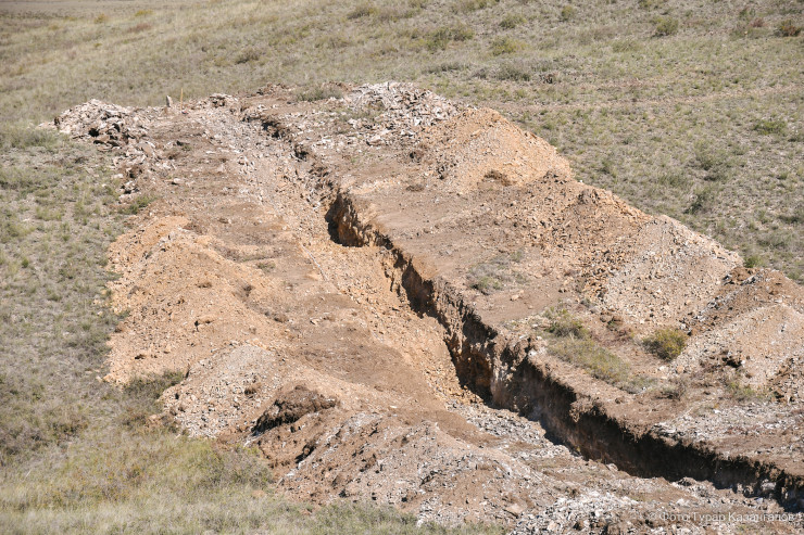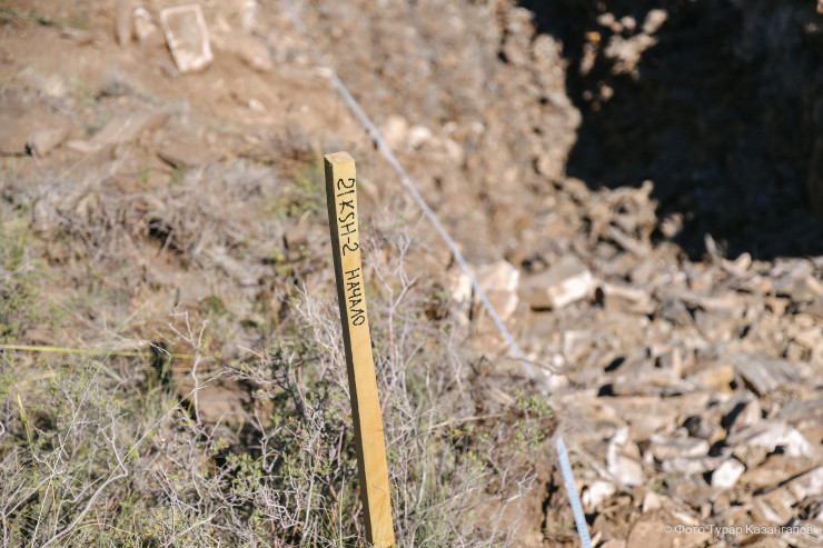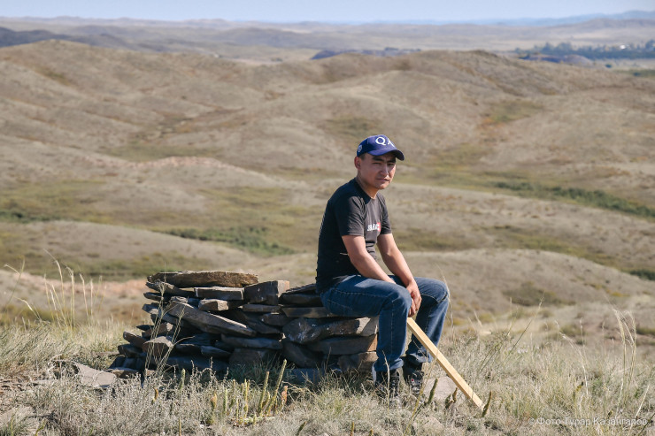 "Это необычный курган, ритуальный, называется курган с усами. В разных регионах такие бывают. Археологи сказали, что в этом месте особо ценных находок не будет, оно служило для ритуала. Мы нашли здесь фрагменты керамической посуды и человеческое захоронение, по всей видимости, это был высокий мужчина", - рассказывает нам Берикбол. Вообще, он сотрудник крестьянского хозяйства, но длительное общение с археологами, видимо, оставило свой след, и он теперь тоже в какой-то степени специалист.