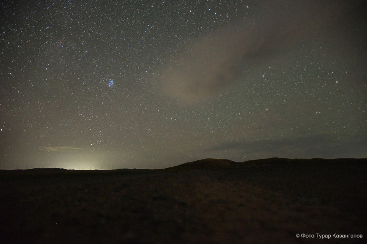 "Вот эти усы смотрят прямо на восход. Если наблюдать сейчас, то солнце будет выходить чуть левее усов, но в день весеннего равноденствия солнце должно взойти прямо посередине. На это рассчитан курган, то есть все это для ритуала. Теперь мы сами хотим в марте понаблюдать, как это будет", - говорит Берикбол.