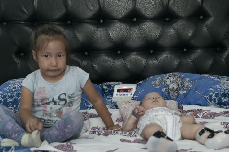 "Фатиме поставили диагноз "спинальная мышечная атрофия, первый тип" - самый сложный тип, у нее сейчас сложное состояние, температура, мы купили аппарат ИВЛ, он стоит 2,5 миллиона тенге", - говорит Канат.