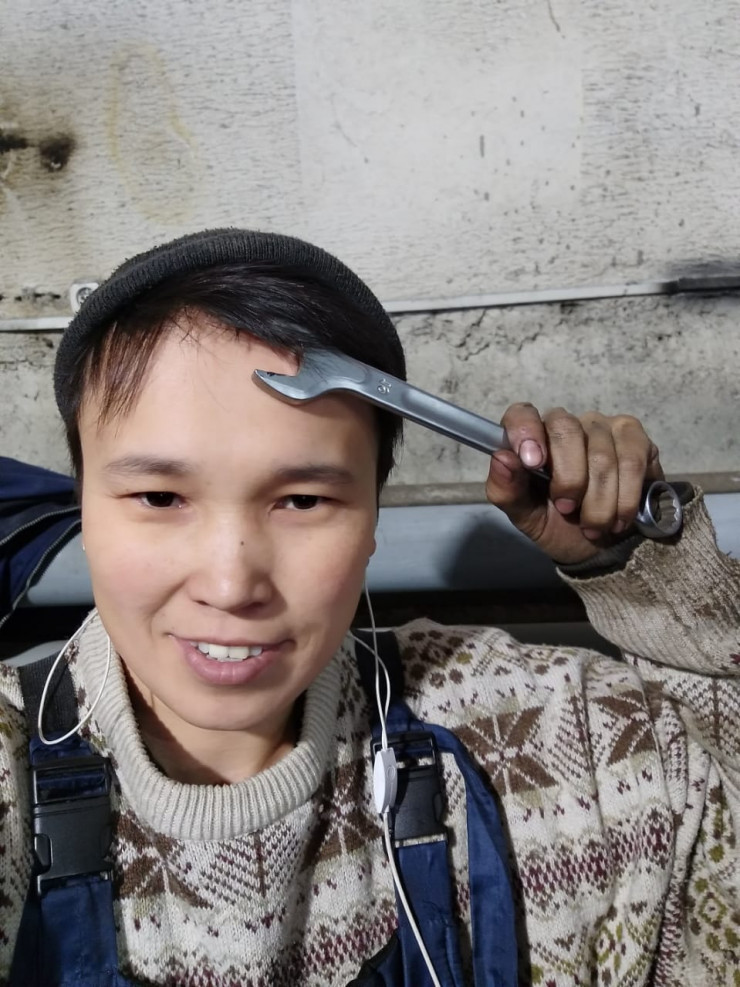 Когда Алмагуль исполнилось 27 лет, она набралась смелости и сказала родителям, что хочет кардинально изменить свою жизнь. Бросила работу и поступила в колледж на слесаря по ремонту и обслуживанию автомобилей. В первом же областном конкурсе победила в номинации "Лучший механик".