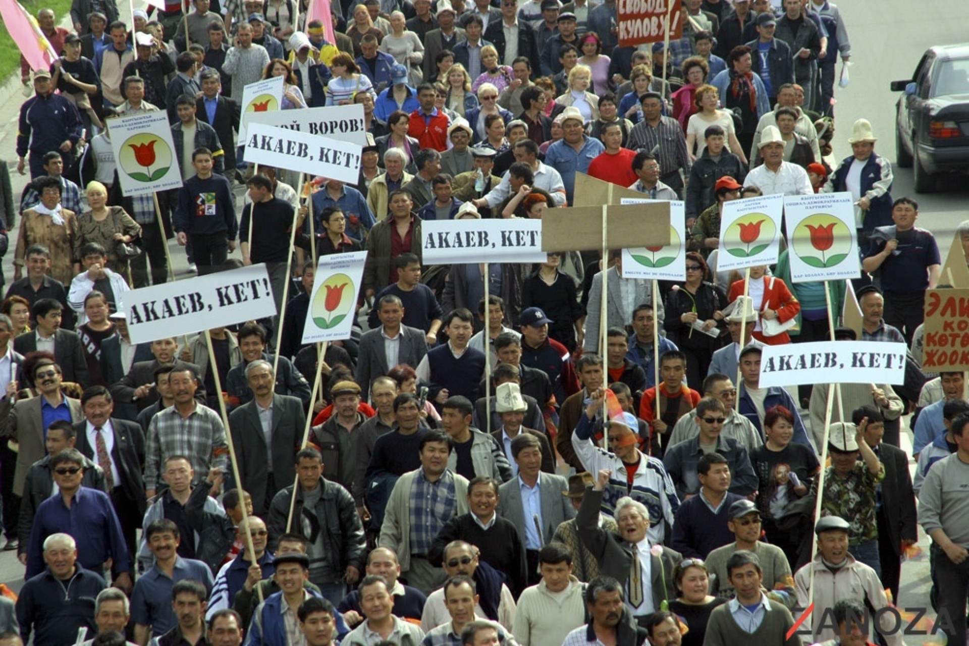 Однако в 2005 году власть Акаева была свергнута. Собственно, именно результаты парламентских выборов 27 февраля 2005 года вызвали массовое недовольство, особенно на юге. Но здесь стоит отметить, что относительно либеральная политика в предшествующие годы, несмотря на аресты некоторых видных политиков — Феликса Кулова и Азимбека Бекназарова, привела к тому, что в Кыргызстане была сильная оппозиция.
