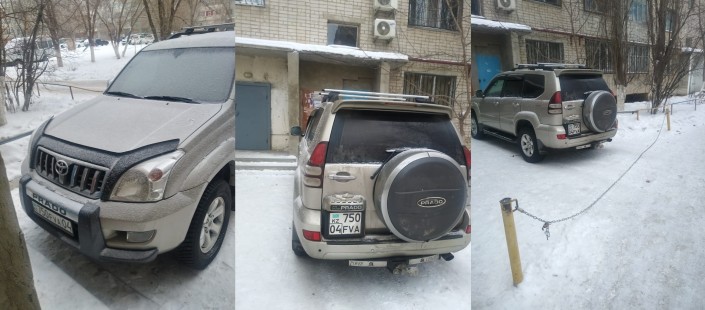 А 19 декабря водитель этого Toyota Land Cruiser Prado припарковался возле дома по адресу: проспект Сейфуллина, 510 и закрыл проход в подъезд № 6.