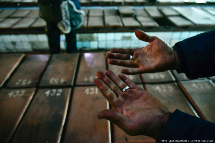 Тогда меня и моего коллегу-фотографа Турара Казангапова в здание завели сами шахтеры, так как охрана "АрселорМиттал Темиртау" не запускала журналистов. Благодаря рабочим мы смогли запечатлеть не только детали самой забастовки, но и состояние шахты.