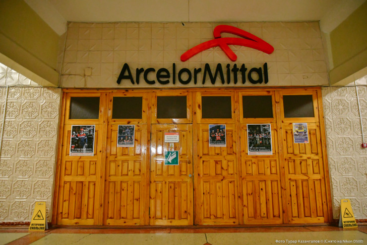 На этом фото из более свежего по времени только надпись ArcelorMittal, плакаты и таблички "Осторожно, скользкий пол".