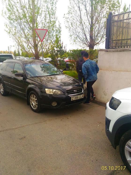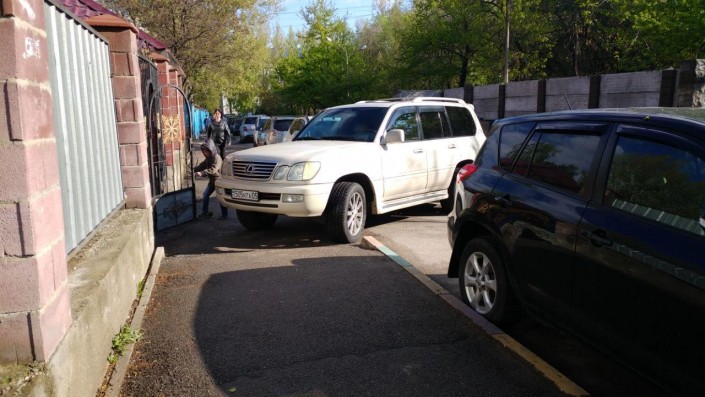"Часто ставит машину прям у выхода из подъезда в ЖК "Асыл Арман". Установили полусферы, так он их сдвинул, чтобы поставить машину именно там, загородив выход из подъезда. Женщины с колясками и маленькими детьми обходят по траве и через бордюр", - жалуется очевидец.
