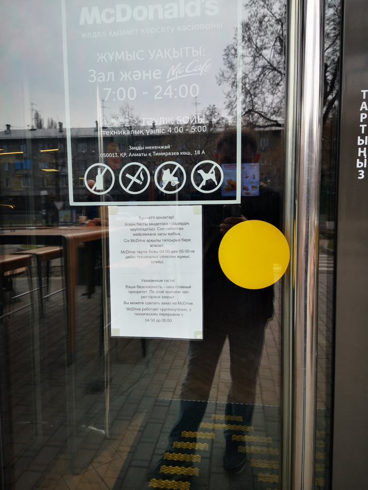 Даже известный фастфуд закрыл свой зал, но их еду можно заказать навынос.