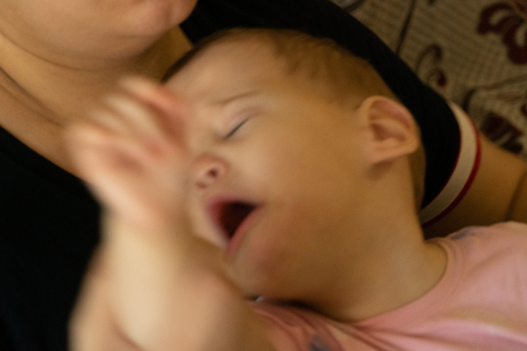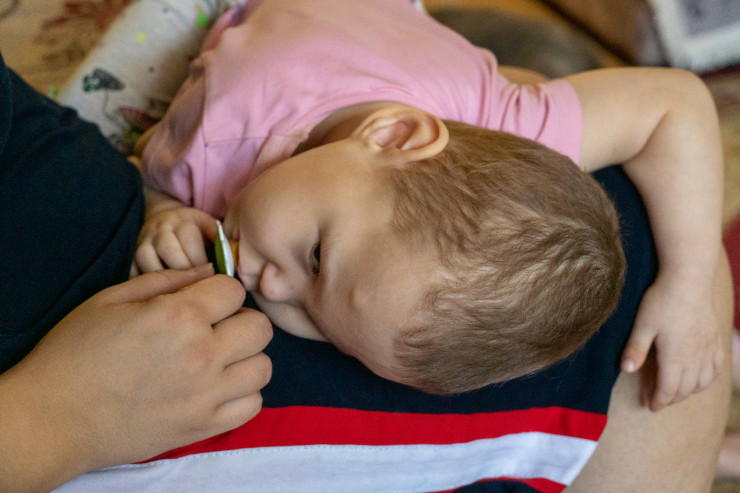 Но и на руках у Зульфии Камилла ведет себя неспокойно, запрокинув голову и закатив глаза. Мать говорит, что у ребенка постоянно сводит ручки и ножки, поэтому их нужно периодически разминать.