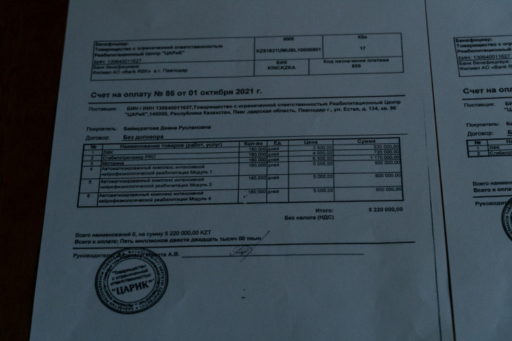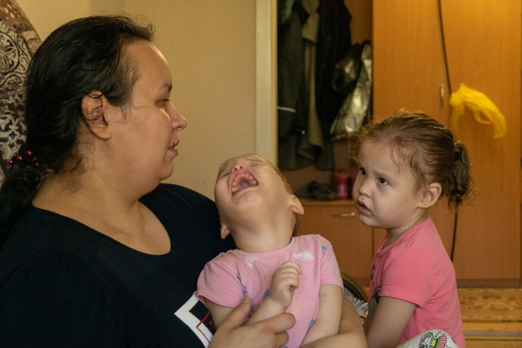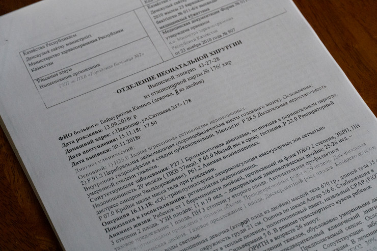 "Изначально на местном уровне (в Павлодаре) нам сказали, что бессмысленно что-то делать, говорили: отправляйте домой на паллиативное лечение, пускай лежит на обезболивающих. Но потом нас прооперировали в столице, при этом врач там сказал, что в его практике были случаи и большего поражения мозга, что наш случай не такой прям, что можно что-то сделать если реабилитировать. И другие врачи говорят, что реабилитация ей идет на пользу, что это не бессмысленно, она пытается встать на ножки, конечно, с опорой, ведь голову она не держит", - объясняет Зульфия.