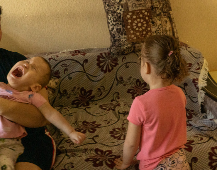 И если Диана, которая родилась крупнее, может самостоятельно перемещаться по квартире (делает она это на четвереньках) и может сама по себе играть, то ее сестра Камилла, появившаяся на свет вообще крохой, постоянно на руках у мамы, а стоит ее оставить лежать на диване одну, как девочка тут же начинает кричать.