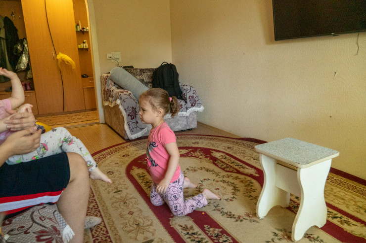 "Диану я хочу поставить на ноги, как бы мне врачи ни говорили, что, возможно, она так и будет ходить на коленках, но я знаю, что она пойдет, ей нужен толчок, у нее ноги слабые, она уже сейчас за ручку пытается. Возможно, в дальнейшем ей понадобится операция на ноги", - говорит Зульфия.