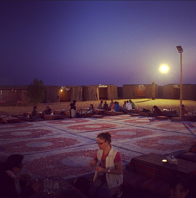 Скучные дороги Абу-Даби. Так их назвал наш гид, который вез нас на сафари, а затем должен был доставить в лагерь бедуинов. "Ты абсолютно прав", - подумал я и снова провалился в сон. Наша группа заметно приободрилась после длительной поездки, когда было объявлено, что уже скоро начнется езда по оранжевым дюнам. Заранее проведя инструктаж и уточнив все вопросы насчет здоровья и склонности к укачиванию, гид медленно направил автомобиль вглубь пустыни. Вдоволь позанимавшись серфингом, используя вместо доски джип, а вместо волн песок, наш гид остановил автомобиль в его "любимом" месте", откуда открывался завораживающий вид на закат. Немножко уставшие после сафари и сильно голодные, мы отправились в лагерь бедуинов. Там, уютно расположившись под открытым небом и набрав различных вкусностей, казахстанская медиагруппа бурно обсуждала прошедшее сафари. До кальяна я тогда так и не добрался, но зато мне успели сделать татуировку хной. В завершение вечера было дано главное представление - танец живот. Девушка исполнила танец великолепно, особенно удивило, как она ловко управлялась с кинжалом, то и дело оставляя его на голове, при этом активно крутя бедрами. В самом конце во всем лагере потушили свет, чтобы можно было насладиться видом звездного неба.
