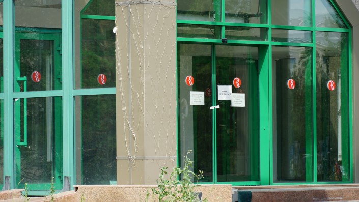 Охранник отказался нас пускать на территорию, отметив лишь, что внутри никого нет и все люди покинули гостиницу еще полтора месяца назад.