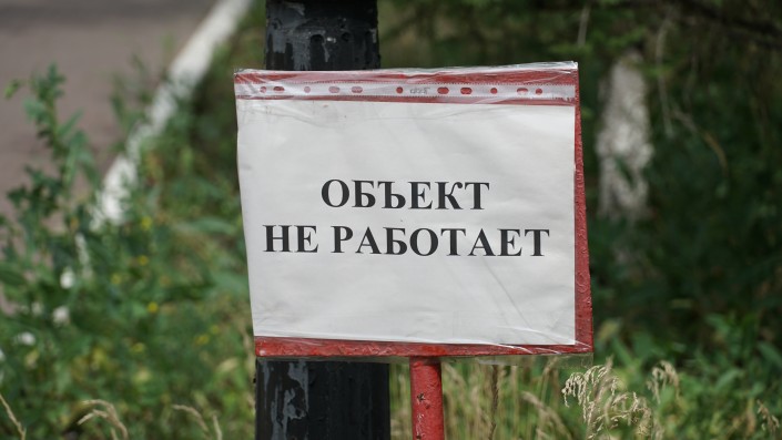 При въезде на территорию отеля расклеены объявления: "Объект не работает".