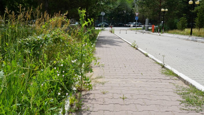 Если часть отеля, выходящая на проспект Абая, выглядит вполне чистой, то задний двор гостиницы кажется немного заброшенным.