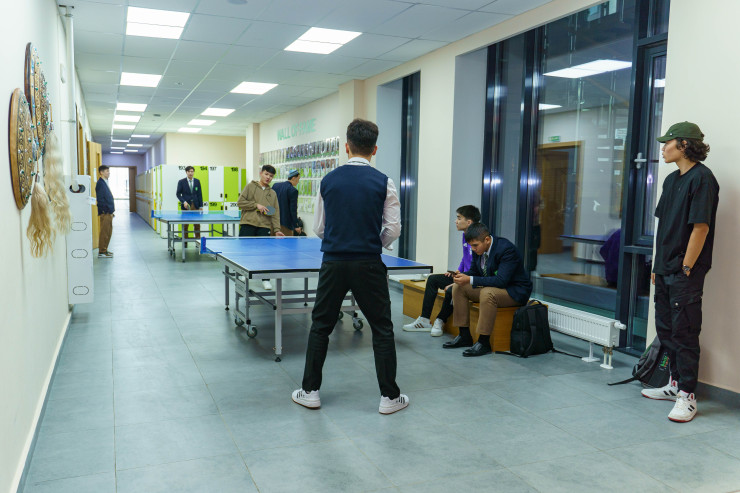 Еще одно отличие – это отсутствие деления на классы, как в обычных школах, которые посещают вместе одни и те же занятия. Вместо этого есть 14 "орд" из 26 человек каждая, где поровну учеников 10-го и 11-го классов. Они могут даже не пересекаться на одних и тех же занятиях, это скорее комьюнити, где ученики помогают друг другу с уроками и поддерживают друг друга в здоровой конкуренции с другими ордами – в учебе, спортивных соревнованиях и творчестве. Преподают в школе, подчеркивает Алмаc Несіпбай, учителя не только из Казахстана, но и зарубежья – все специалисты высокого уровня.