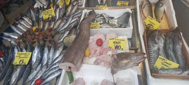 На прилавках торговцы размещают товар. Без рыбы коренные жители не мыслят своего существования.