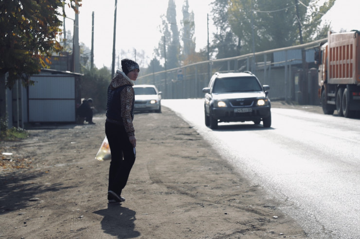 "В акимате только обещают. Но уже зима на носу, освещения так и нет, - рассказывает Ульяна. - Видите, у нас и днем какой поток машин.