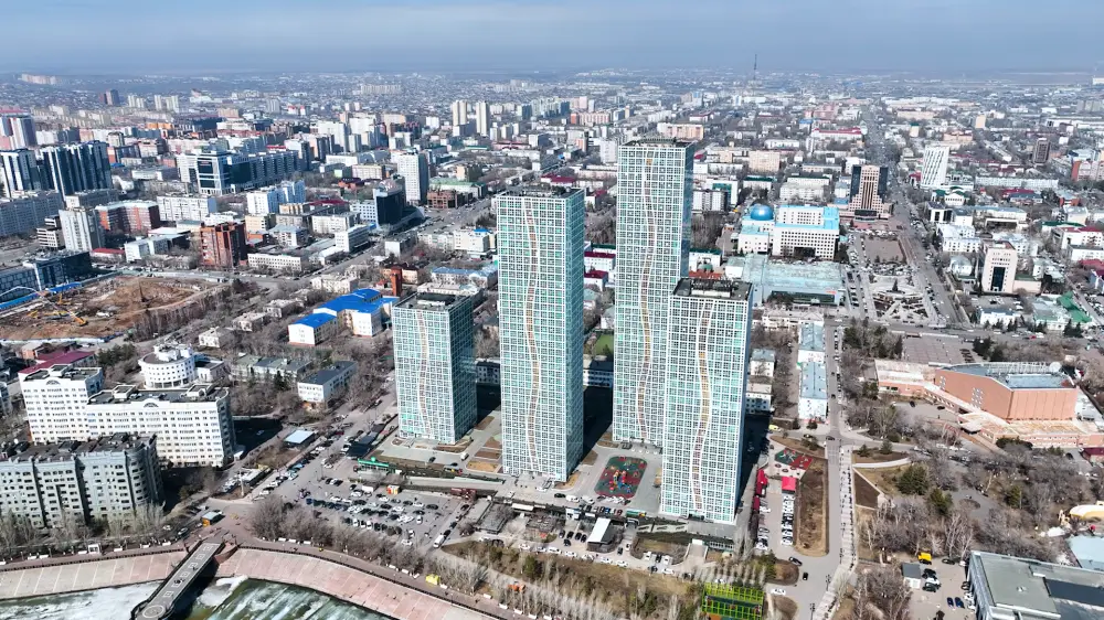 "Гранд Алатау" состоит из четырех блоков: 20, 28, 38 и 43 этажа.