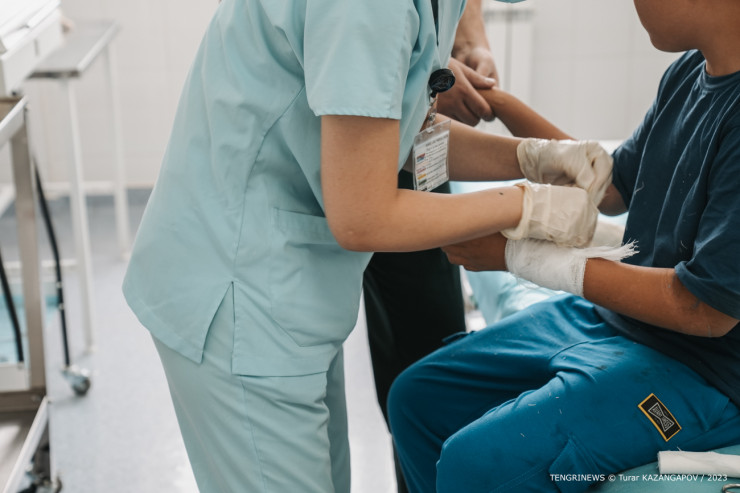 "Этим летом мы как на боевых действиях, можно сказать, как на фронте. Очень много сложных операций. Дети чаще попадают к нам после ДТП, падения из окон квартир. В сутки сейчас мы фиксируем до 400 обращений, из низ 10-13 случаев заканчиваются госпитализацией", - говорит Дуйсенбаев.