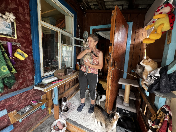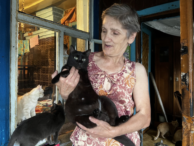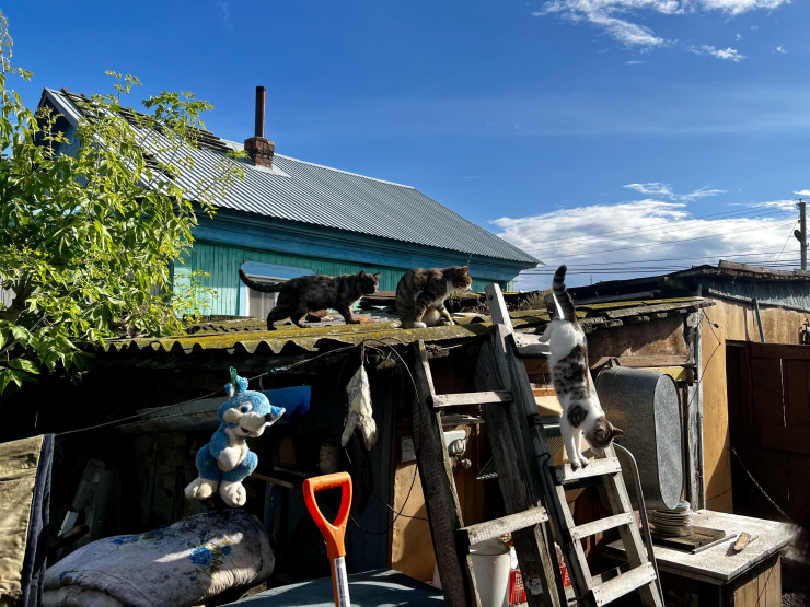 "Дом старый, он 1958 года постройки. Крыша течет, фундамент рушится. Дом холодный, и ради кошек топлю целый день, чтобы тепло было. Еще и лето холодное, дождливое было, постоянно топила печь. Боюсь, чтобы кошки не заболели, окно лишний раз не открываю, чтобы сквозняков не было", - отмечает Татьяна Анохина.