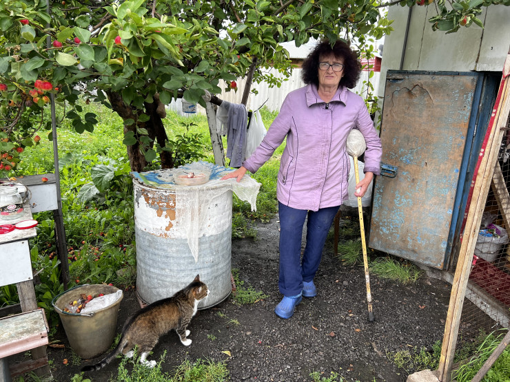Мы выходим во двор, и к нашему разговору присоединяется Светлана Фельская, которая как раз приехала кормить своих животных.
